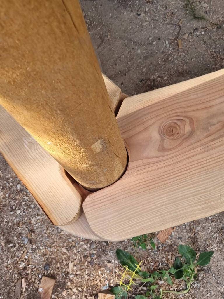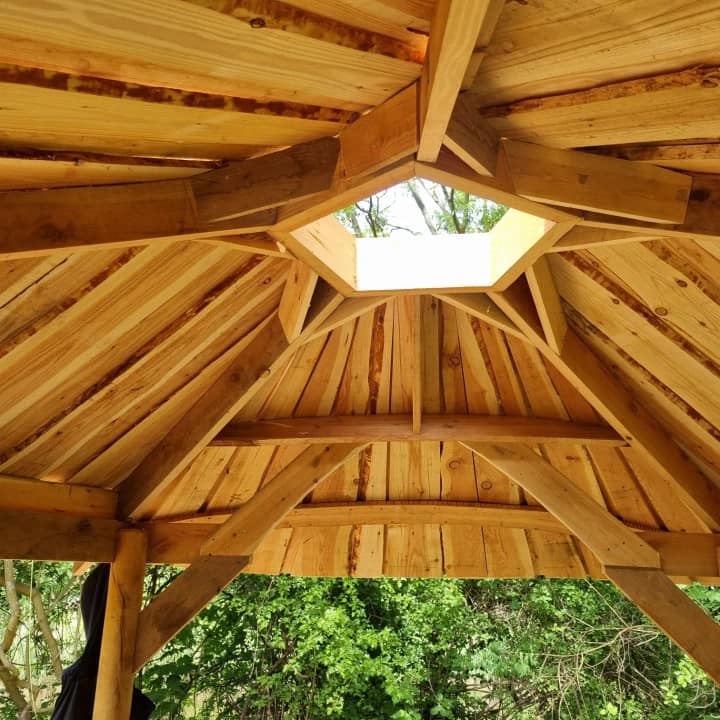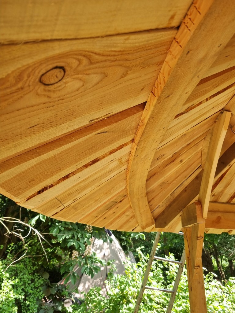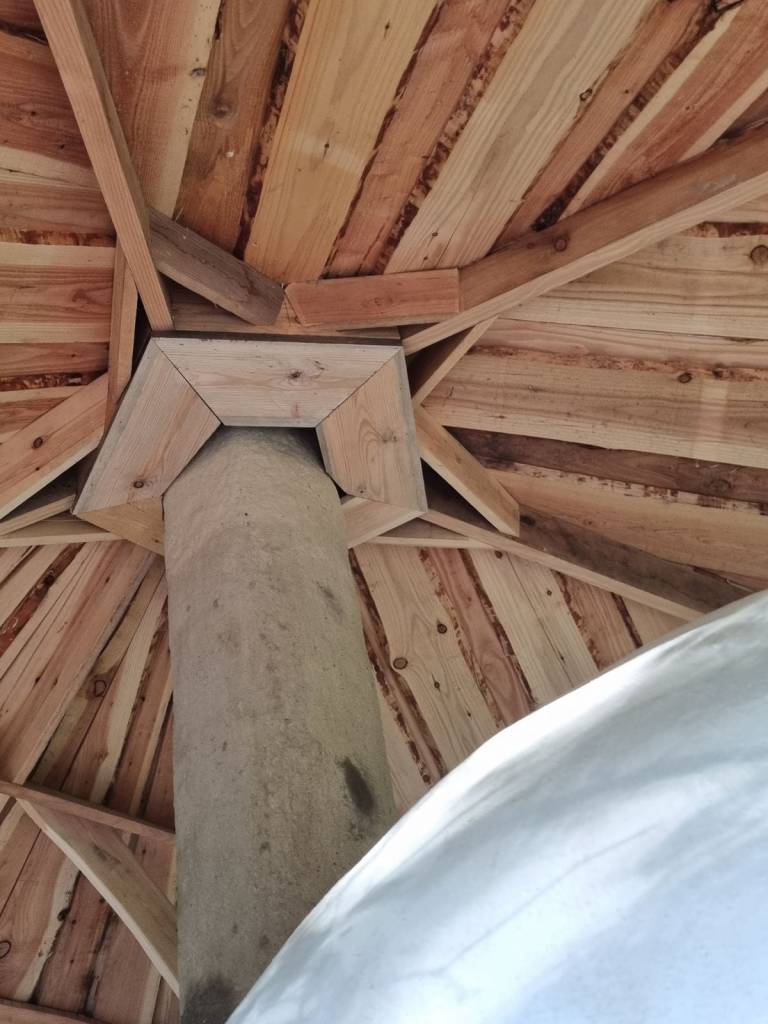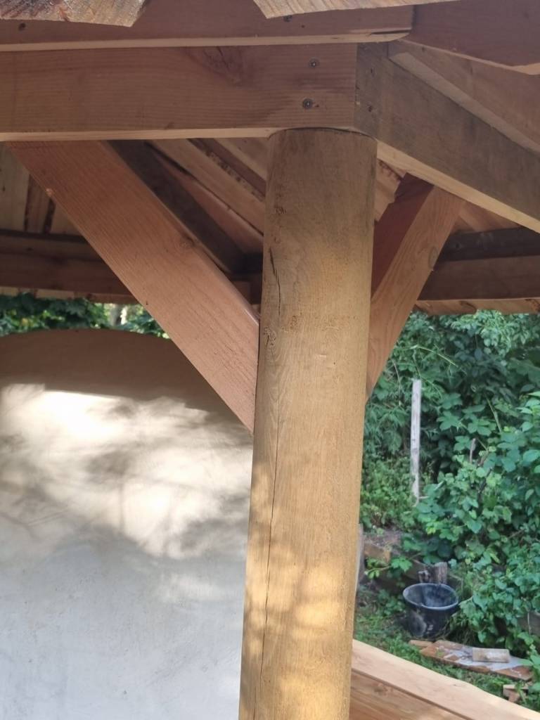 Pizzapavillon til Naturværkstedet Kløvemarken, København. Bygget i høj grad af genanvendelige materialer. 120 cm stor Ovnen sidder på en aflagt kabeltromle. Ovnen har en indbygget dampkasse og kan således bruges til brødbagning. God isolering hele vejen rundt gør at ovnen holder temperatur i 3-4 dage. Der bygget et bord i børnehøjde rundt om tromlen, så børn fra 3 til seks år kan stå og lave deres egen pizza. Bænke sidder på læderhængsler rundt om egestolpe, hvilket tillader deres frie bevægelighed og bedre adgang for børnene til ovnen. Indbygget askeopsamling tillader hurtig og nem rensning af ovnen ifm. bagning af brød.